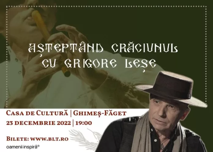Cunoscutul interpret de muzică populară autentică Grigore Leșe va fi, pe 23 decembrie, oaspetele comunei Ghimeș-Făget, unde va susține, de la ora 19,00, un concert la Casa de Cultură.