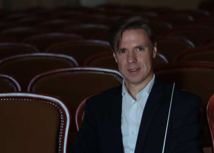 La pupitrul dirijoral se află Florin Luchian lector la Universitatea Națională de Arte „George Enescu” din Iași, unde a studiat dirijatul cu profesorii Cristian Oroșanu, Dumitru Goia și Bogdan Chiroșcă. A finalizat studiile de masterat în muzicologie, iar în anul 2014 a obținut titlul de doctor beneficiind de două burse internaționale la Universitatea de Muzică și Arte Performante din Viena și în cadrul Manchester International Festival, Marea Britanie.