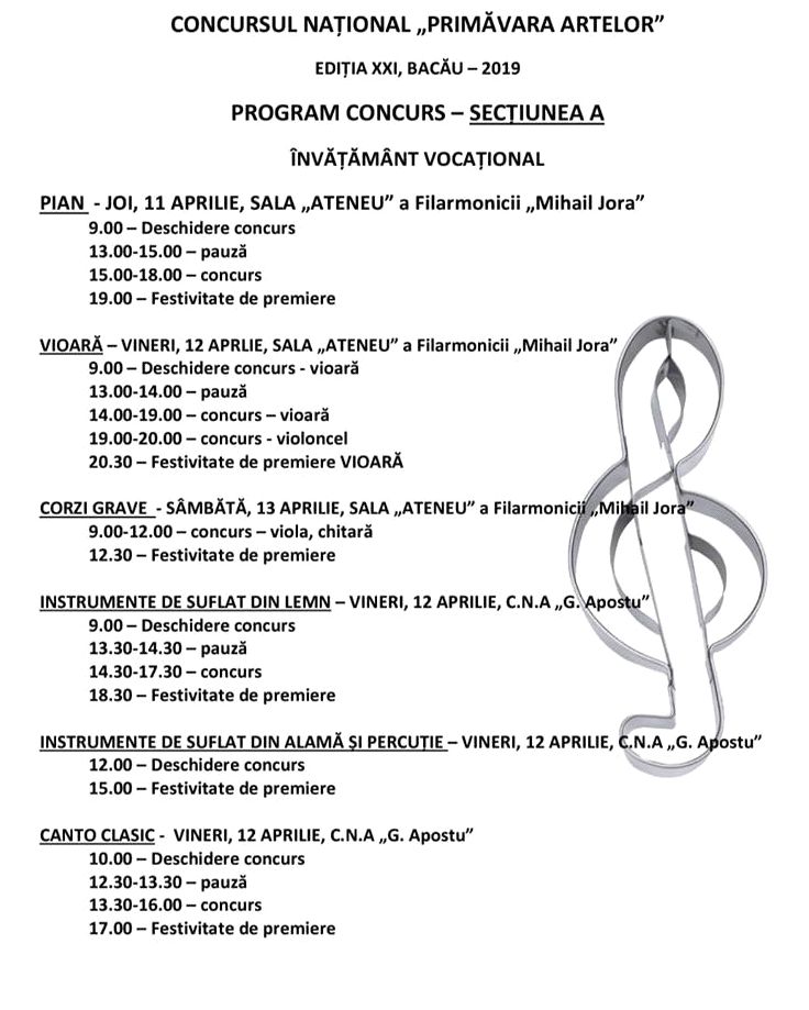 Concursul a inceput, deja, pe 5 aprilie, cu sectiunea de Teorie Solfegiu Dicteu, pentru elevii din invatamantul vocational, unde numerosii participanti au demonstrat o foarte buna pregatire si o mare dorinta de a obtine rezultate cat mai bune.