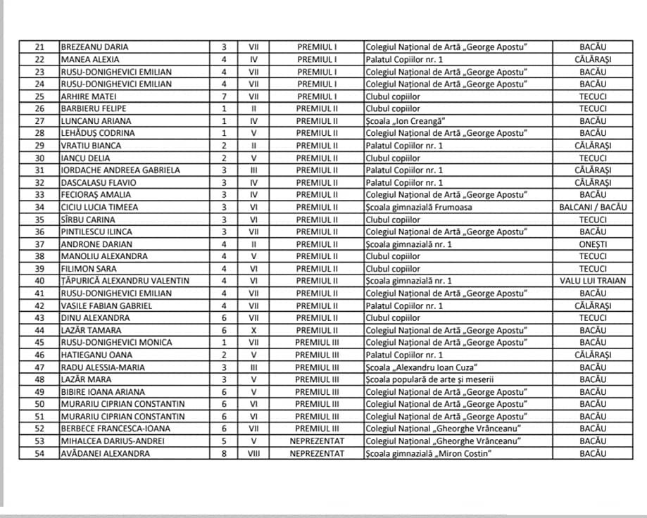 de la Colegiul National de Arta ’’GEORGE APOSTU’ ’BACAU
