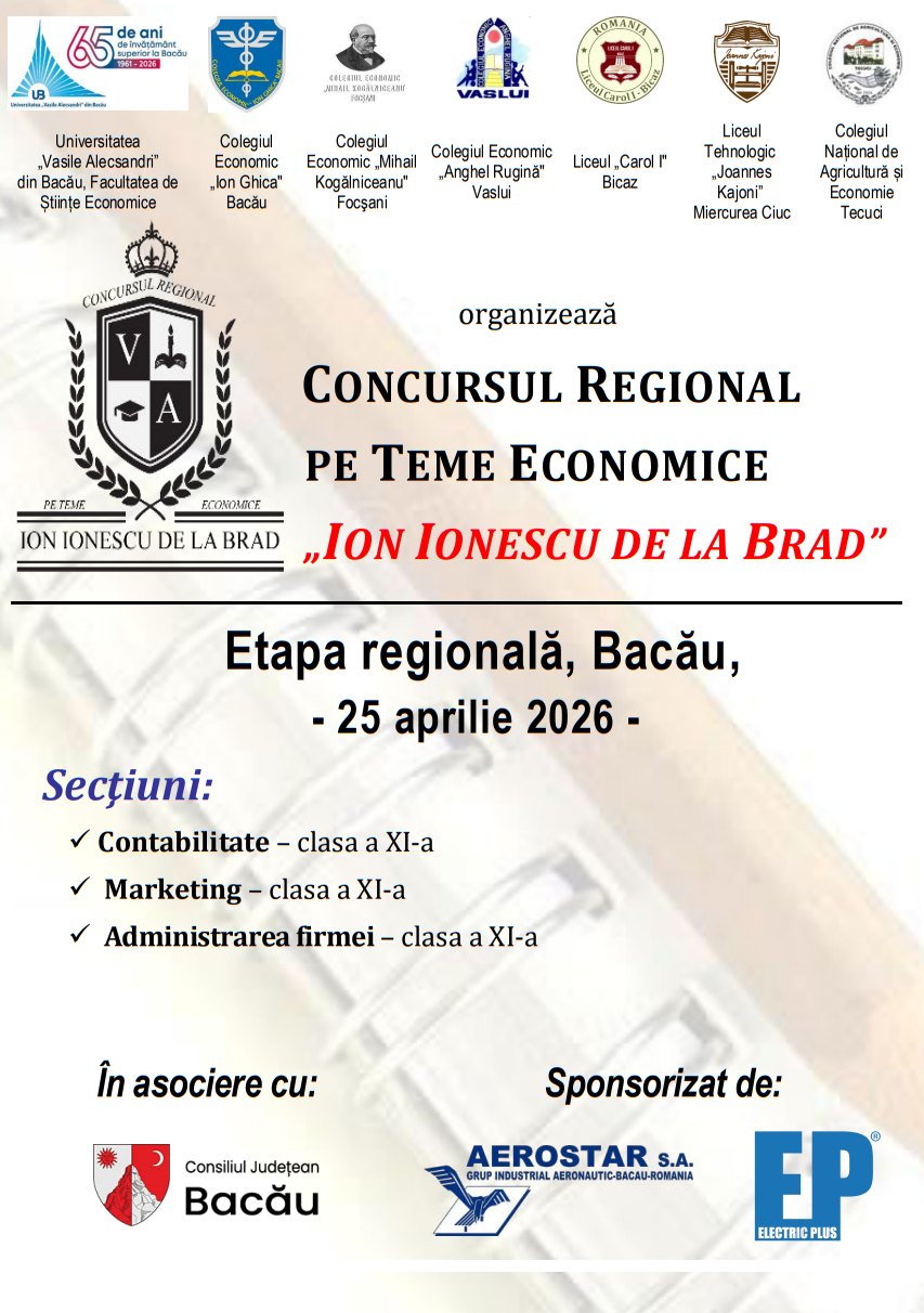 În data de 25 aprilie 2026, Facultatea de Științe Economice din cadrul Universității „Vasile Alecsandri” din Bacău va găzdui etapa finală a Concursului regional pe teme economice „Ion Ionescu de la Brad”, un eveniment devenit deja o tradiție în mediul educațional.