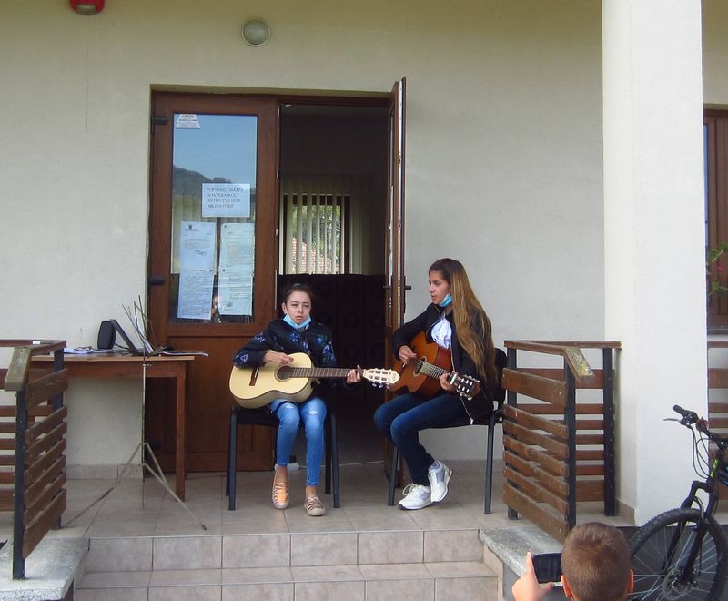 A doua ţintă i-a adus în scena improvizată pe elevii (de la 7 la 40 de ani) clasei externe de instrumente muzicale tradiţionale a Şcolii Populare de Arte şi Meserii Bacău. „Să nu vă supăraţi dacă vor mai greşi vreo notă”, i-a scuzat profesorul Gheorghe Roşu, referentul clasei. N-a fost aşa: fluieriştii, dar şi solistele vocale au arătat că nu mai e mult până la performanţa artistică. Anul abia începe. („Omul cu chitara” a fost Rareş Drăghici.)