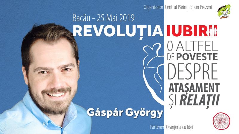Psihoterapeut, autor de cărți, moderator de emisiune, organizator de conferințe și promotor al autocunoașterii ca instrument esențial pentru relații funcționale, Gaspar Gyorgy revine la Bacău în conferința “Revoluția Iubirii”, organizată de Centrul Părinții spun Prezent.