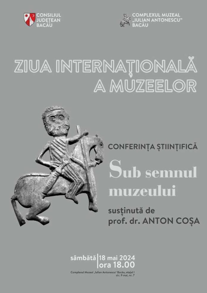 Complexul Muzeal „Iulian Antonescu” Bacău sărbătorește Ziua Internațională a Muzeelor organizând sâmbătă, 18 mai 2024, ora 18,00, la sediul din str. 9 Mai nr. 7, conferinţa ştiinţifică: „Sub semnul muzeului”. Prelegerea va fi susţinută de prof. dr. Anton Coşa.