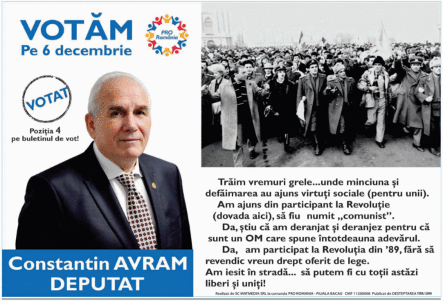 Advertorial politicConstantin Avram: Pe 6 decembrie votăm Pro Româniade Deșteptarea - 4 decembrie 2020AcțiuneFacebookTwitterWhatsAppTelegramVK