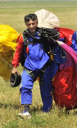 Când am împlinit vârsta de 16 ani, m-am înscris la Aeroclubul „Mircea Zorileanu” din Braşov. Iniţial, mi-am dorit să urmez cursurile de zbor cu motor, însă fata care îmi plăcea atunci s-a înscris la paraşutism, aşa că eu am urmat-o. Un an mai târziu, ea a renunţat, dar eu am rămas până în ziua de azi. Poate aş fi renunţat şi eu dacă nu aş fi asistat la un concurs internaţional de paraşutism organizat la noi, la club. Atunci am văzut ceea ce înseamnă să fii cu adevărat paraşutist şi mi-am dorit să fiu şi eu ca ei.