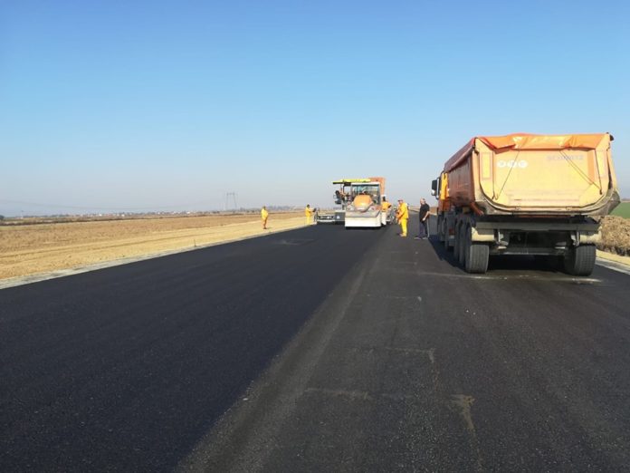 Echipele de așternere ale constructorului se vor muta astăzi pe intrarea pe tronsonul de legătură între DN 2 și DN 11, în zona localităților Nicolae Bălcescu și Sărata.