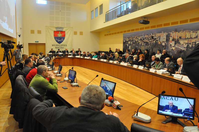Proiectul de buget a fost initiat de primarul Romeo Stavarache, insa acesta nu a fost prezent la sedinta, fiindca se intoarce la munca abia azi, iar la sedinta de ieri au fost prezente cele doua persoane cu care nu are voie sa se vada sau sa comunice, respectiv directorul economic al primariei, Clementina Vinerica, si administratorul public al municipiului, Leonard Padureanu.