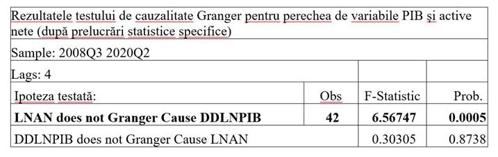 Influența sectorului de pensii private asupra dezvoltării economiei reiese și din testul Granger, care relevă faptul că se manifestă o cauzalitate unidirecțională semnificativă statistic dinspre variabila activelor nete către variabila PIB.