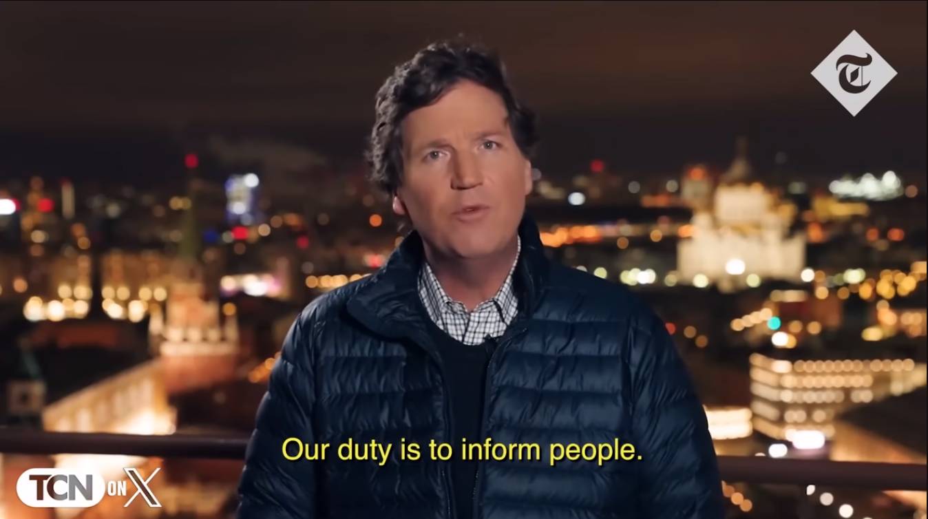 Carlson a subliniat că nu are un punct de vedere pro-rus, ci pro-american, argumentând că este responsabilitatea jurnaliștilor să ofere publicului american o perspectivă autentică asupra evenimentelor și opiniilor conducerii ruse. Cu toate acestea, această declarație a stârnit critici dure, mai ales din partea politicienilor europeni care au acuzat prezentatorul TV că devine un instrument al propagandei ruse.