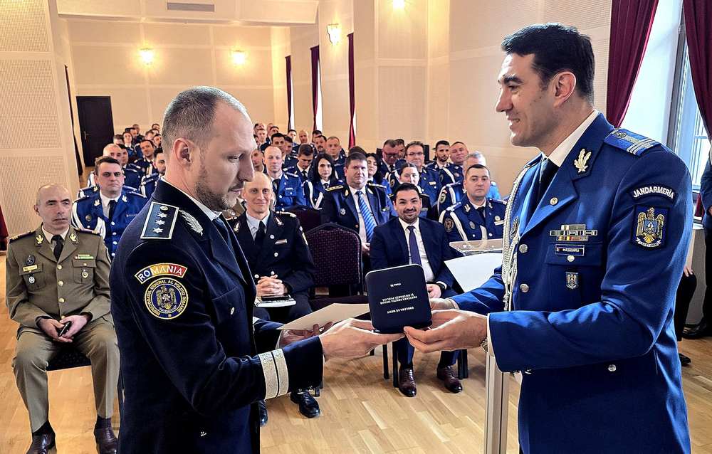 Distincția a fost înmânată de colonel Adrian Constantin Mătăsaru, comandantul Grupării de Jandarmi Mobilă Bacău, domnului comisar șef Dragoș Ojog, adjunct al inspectorului șef al Inspectoratului de Poliție Județean Bacău, într-un cadru festiv și încărcat de semnificație.