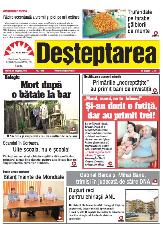 Coperta Deșteptarea 17 august 2015 Acțiune FacebookTwitterWhatsAppTelegramVK Acțiune FacebookTwitterWhatsAppTelegramVK Informare privind cele mai bune practici de utilizare a produselor biocide Decembrie 2025 Moș Nicolae a venit și la copiii internați la „Pediatrie” Profesori din România, participanți în premieră la Conferința Internațională „Holocaust Public Memory in the Post-Survivor Era: Integrating Digital Mnemonic Tools in Museums” Ziua Internațională a Voluntariatului celebrată la Cercul Militar Bacău Fotbal/ Liga 2: FC Bacău a făcut instrucție cu Steaua! Autostrada A7: Progrese majore pe Lotul 1 Focșani – Bacău. Imagini comparative arată ritmul alert al constructorului român UMB Polițiștii băcăuani desfășoară acțiuni de prevenire a violenței domestice la centre comerciale Gala Voluntarului Băcăuan 2025 – 200 de voluntari celebrați la ediția a XVII-a, organizată în contextul Zilei Internaționale a Voluntariatului Scheletul din dulapul Uniunii Europene Tânăr de 21 de ani, reținut după ce a condus fără permis și a folosit plăcuțe de înmatriculare false Hramul Sfintei Varvara și sinaxa preoților din Protopopiatul Onești, celebrate la 240 de metri adâncime în Salina Târgu Ocna Șezătoarea de la Măgura, o punte între generații și tradiții
