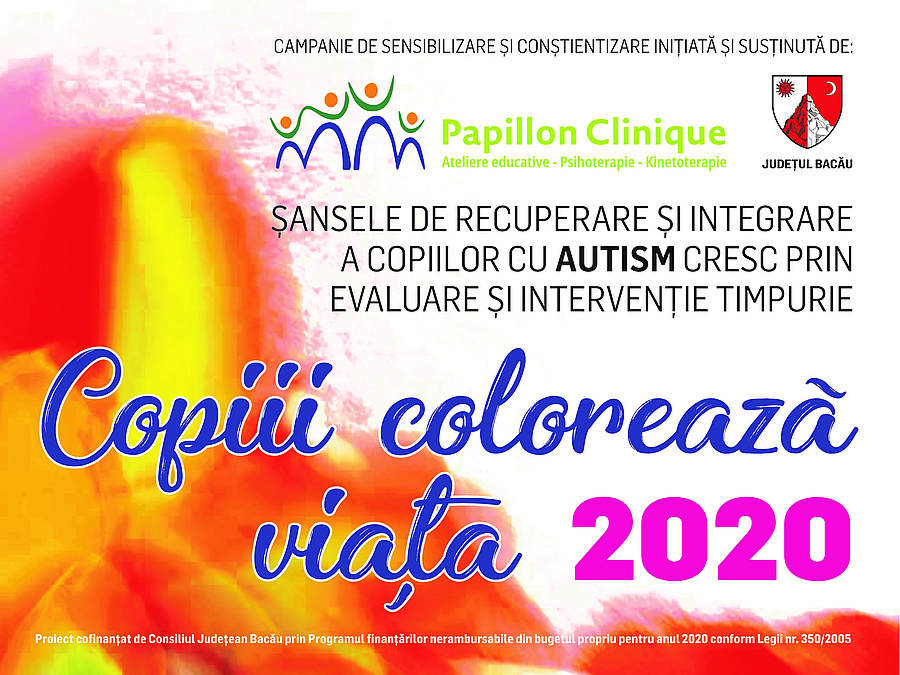 Asociația Papillon Clinique a derulat în perioada 12 august – 13 noiembrie 2020, la nivelul Județului Bacău, proiectul „Copiii colorează viața 2020”.  Proiectul este realizat cu sprijinul Consiliului Judeţean Bacău.Valoarea totală a proiectului este de 38.888,89 lei, iar Autoritatea Contractantă s-a angajat să acorde o finanțare nerambursabilă de maximum 35.000 lei, echivalentă cu 90% din valoarea totală eligibilă a Proiectului.