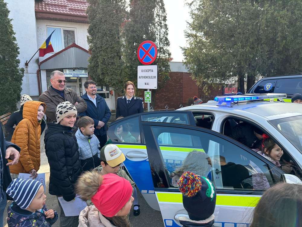 Totodată, polițiștii le-au prezentat copiilor elemente de tehnică din dotarea inspectoratului și autospecialele de intervenție.