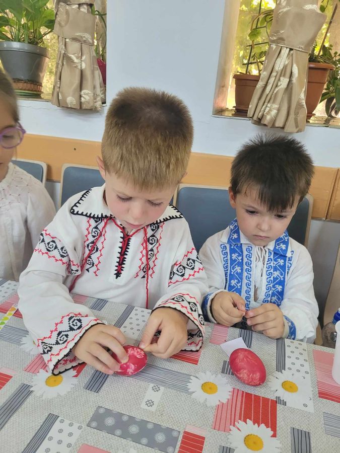 Bunicile harnice din cadrul Centrului i-au învățat pe copii să vopseasca ouă, să le decoreze prin diferite tehnici păstrate şi transmise din generaţie în generaţie: cu frunze sau cu ceară, să pregătească lichidul pentru colorarea ouălor.