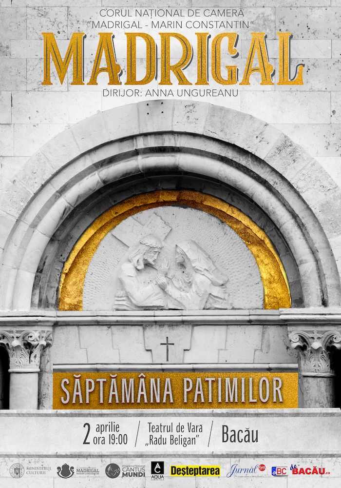 Miercuri, 2 aprilie, de la ora 19:00, Corul Național de Cameră „Madrigal – Marin Constantin”, dirijat de Anna Ungureanu, invită publicul din Bacău la Spectacolul Extraordinar „Săptămâna Patimilor”.