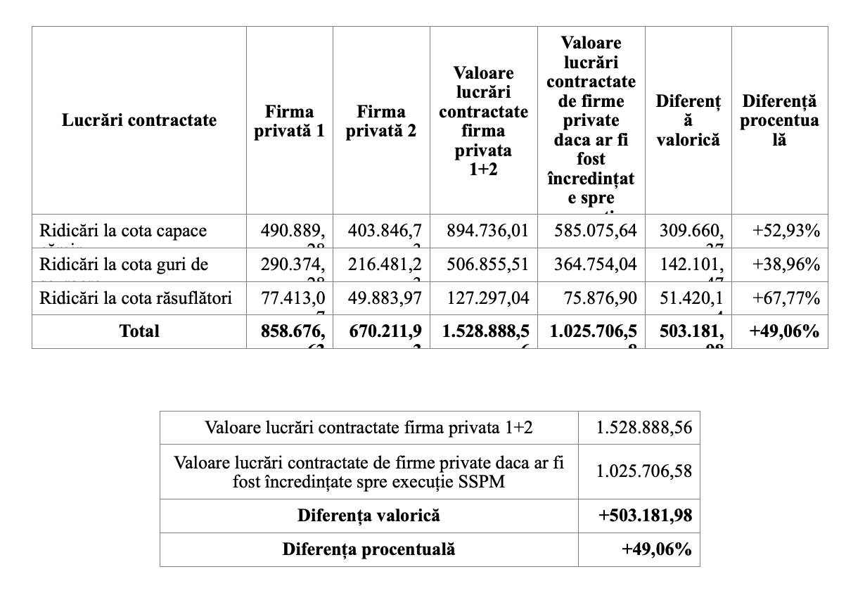 Ca și sumă, discutăm la un total contract executat de o diferența de 503.181,98 LEI mai scump față de valorile contractuale încheiate cu SSPM.