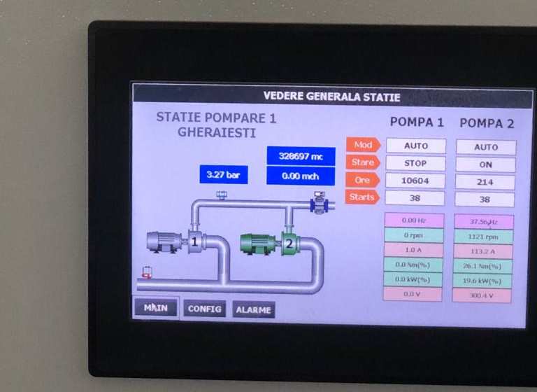 „Precizam ca la ora 13:20 Rezerva de apa din zona Gheraiesti nu funcționează. Stația de demanganizare funcționează la capacitatea maxima a frontului de captare. Atașam foto cu display-ul pompei.