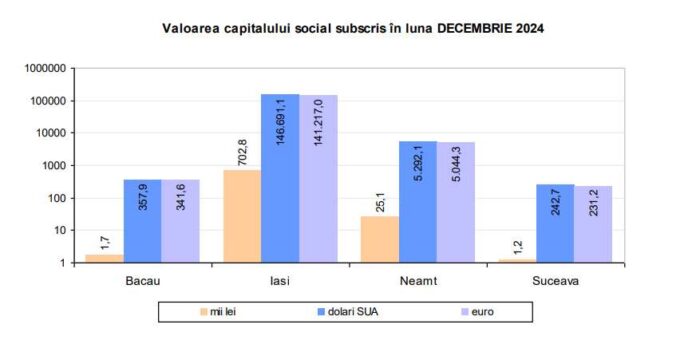 În ceea ce privește valoarea totală a capitalului social subscris, firmele nou-înmatriculate în județul Bacău au cumulat doar 1,7 mii lei (RON), echivalentul a 0,07% din totalul pe țară și 0,23% din regiunea de Nord-Est.