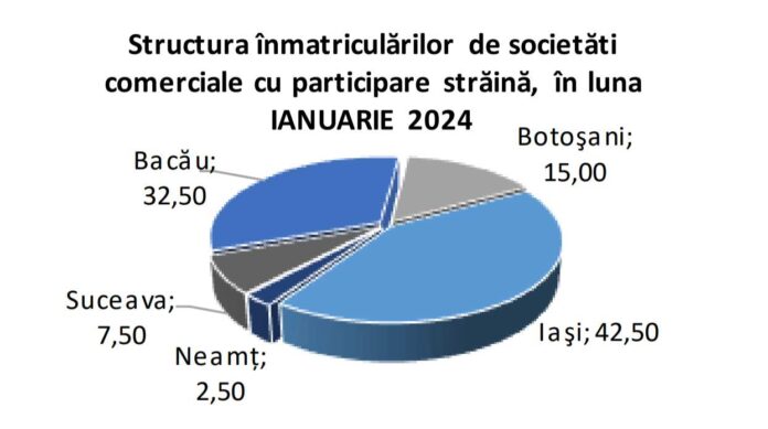 În ceea ce privește regiunea de nord-est a țării, cele 6 județe ale acesteia au înregistrat împreună 8,32% din numărul total al societăților cu participare străină la capital. Județul Iași se remarcă în această regiune, situându-se pe primul loc cu 17 înmatriculări, reprezentând 42,5% din numărul total al înmatriculărilor de societăți cu participare străină în regiunea de nord-est.