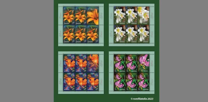 Romfilatelia a pus în vânzare, inclusiv în magazinul său din Bacău, emisiunea de mărci poștale intitulată Crini.