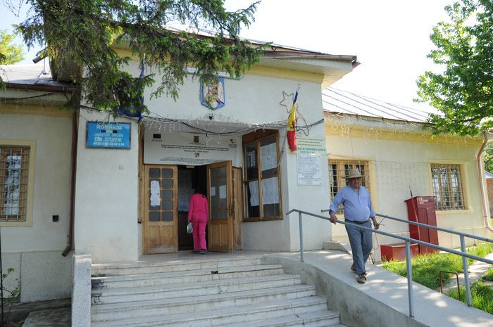 „Suntem câtiva oameni. E vorba de primar, viceprimar, secretar, contabil, referent social, consilier si un sofer care conduce microbuzul scolii. Mai sunt trei angajati si la Centrul de zi. Stam foarte prost cu personalul!”