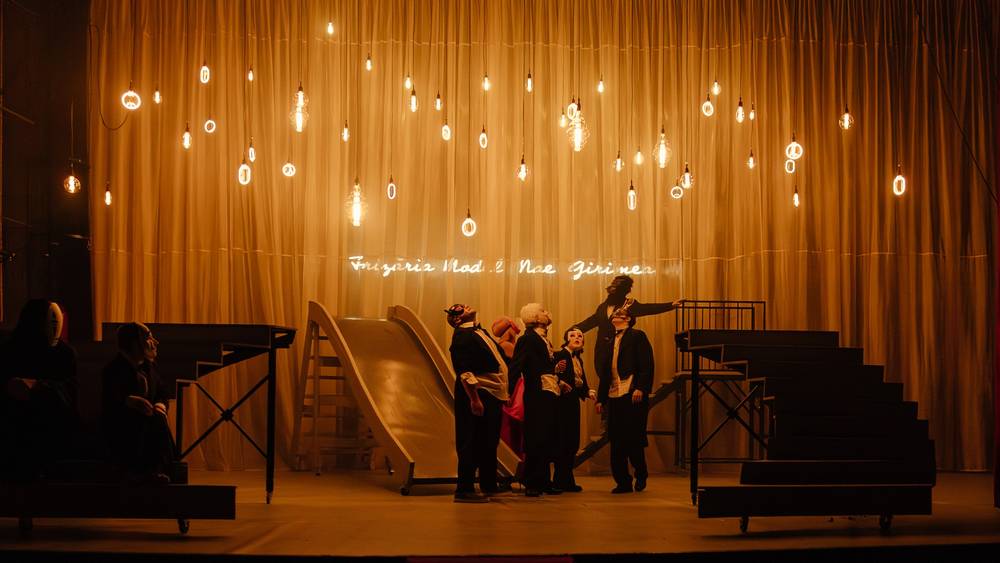 Pe care le vom descoperi și în montarea băcăuană, Alex Bogdan înțelegând halimaua ca pe „un vis ciudat din care nu ne putem, trezi”. În spectacolul său, atmosfera e înecată în ceață și muzica lui Andrei Piciorea e stranie, misterioasă, de parcă suntem în „Twin Peaks”. Scenografia Clarei Ștefana e interesantă, cu o frizerie modernă, cochetă („în stil italian”, spune artista), cu sala de bal spectaculoasă (cu multe luminițe) în care se află și un tobogan! Probabil, în concepția regizorală, acesta semnifică o lume în totală degringoladă, prăbușindu-se rapid sub ochii noștri. Și lighting design-ul asigurat de Costi Baciu funcționează bine, amplificând atmosfera încărcata, apăsătoare, de buimăceală.