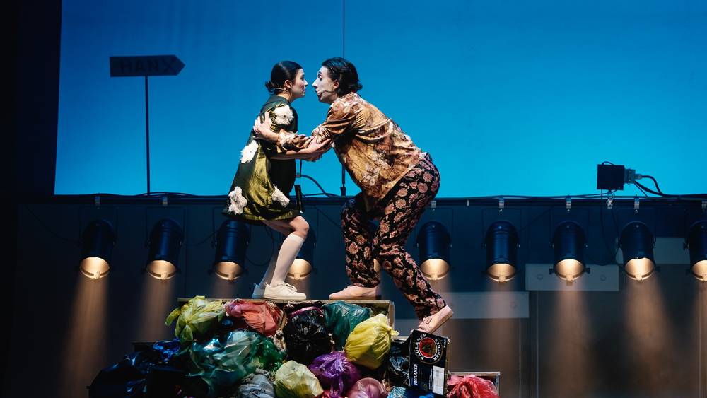 Sunt în spectacol imagini de o mare plasticitate, superbe, care-ți rămân în memorie, unele amintind de niște rafinate stampe japoneze, light designul lui Cristi Baciu decupându-le minunat, pentru a le potența expresivitatea. Vizual, cromatic, acustic, spectacolul pune în mișcare bogate sinestezii, iar costumele sunt de-o imaginație nebună, absolut delicioasă! Atât cele sugerând o dictatură militară de tip asiatic, cât și cele extravagante, ale personajelor Leonce, Regele, Valerio.
