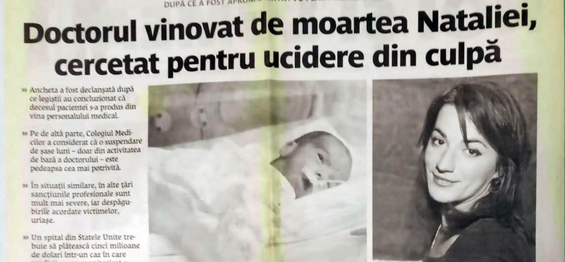 Da, toate sunt revoltătoare, oricât de mică ar fi vina personalului medical, dar moartea pacientului este cel mai grav act de malpraxis. Ancheta mea a pornit la suspiciunea rezonabilă că o pacientă tânără nu avea cum să moară după naștere, dacă medicii și-ar fi făcut datoria. Astăzi, 19 septembrie, Natalia Ionescu ar fi împlinit 55 de ani.