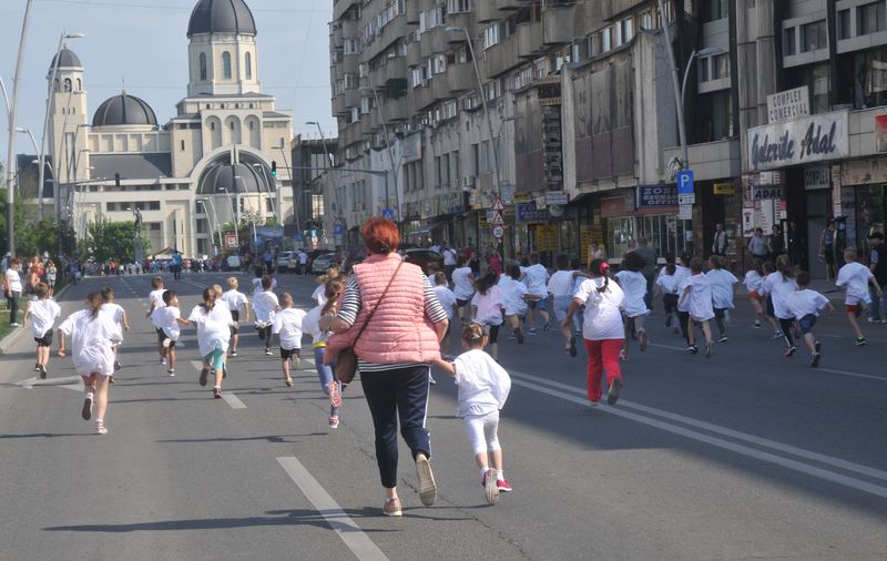 Copiii care s-au aliniat la start au avut de alergat din fața magazinului „Luceafărul”, până la Casa de Asigurări de Sănătate și înapoi.