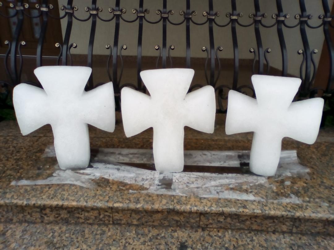 Parohia Săucești a păstrat tradiția crucilor de gheață, chiar dacă acestea au fost făcute în forme speciale și congelate.