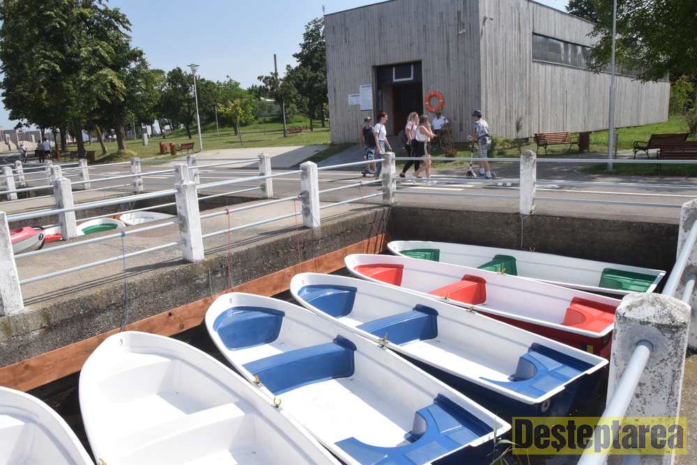 Nu că l-ar impresiona, dar nu-i place să fie în centrul atenției. „Când închiriem o barcă, prețurile… vedeți! Sunt afișate! Ne rezumăm, conform legii, de a nota doar datele personale. Avem barcă de intervenție. Supraveghem să nu apară probleme. Să nu i se facă rău cuiva. Cu mulți ani în urmă se reținea buletinul. Dacă se depășea termenul, se plătea din cât s-a întârziat. Mergem pe încredere. Nu am avut probleme. Am avut și cazuri când ne-au anunțat că vor să mai stea, și plătesc când predau barca. Eu le recamand caiacele, canoele. Pot face un circuit. Când bate vântul din sud, cel mai indicat e să se ducă prin partea dreaptă, pe sub podul de la intrare, să se învârtă în jurul Insulei mici, și să revină la debarcader. Oricum efortul se resimte. Este mai bine să revină cu vântul din spate. Dacă bate dinspre nord…? E logic! Mai greu cu generația asta obișnuită cu telefonul, nu cu vâsla. Pănă reușesc să pornească… Se pot face și programări.”