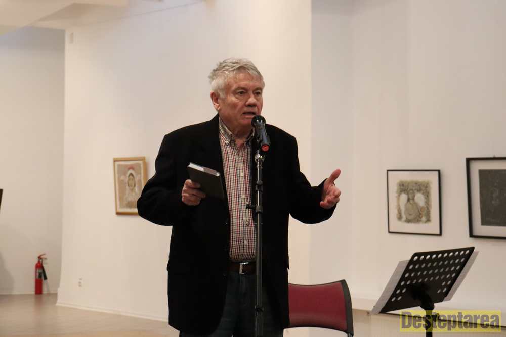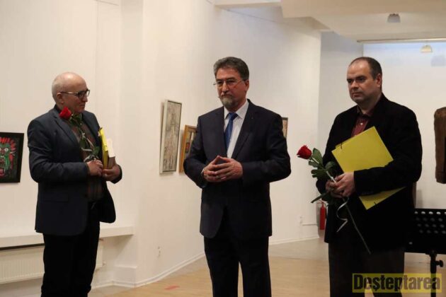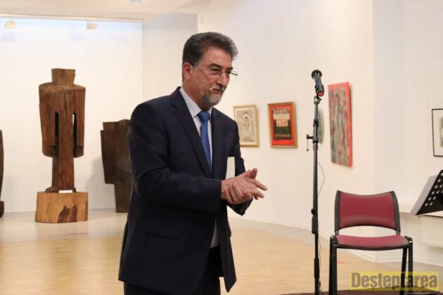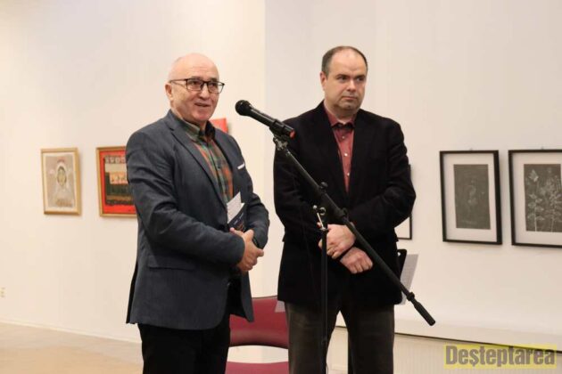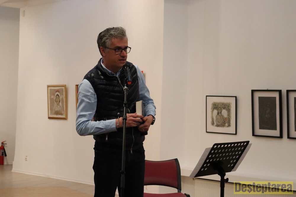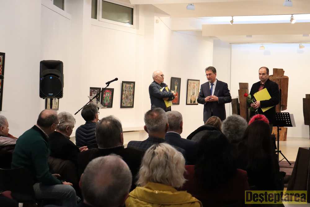 Marius Manta: Chiar exact mai înainte, când îți răspundea domnul Ion Fercu, la asta mă gândeam – că ceea ce am făcut noi într-o oarecare măsură îmi aduce aminte de efortul pe care-l face un sculptor. Mai înainte am avut și plăcerea, dar onoarea, de fapt, să semnez o carte pentru domnul Gheorghe Zărnescu care odată, demult, mi-a vorbit foarte frumos despre care sunt rosturile unui sculptor. E foarte greu să vezi în Univers un obiect și, dincolo de volumetria cu care se prezintă într-un anumit spațiu, să începi să decupezi și să ajungi la o formă ideală. Cred că noi am scris volumul ăsta și cu gândul că ar trebui să înlăturăm acele părți mai puțin plăcute care ne înconjoară. Acum, revenind la George Apostu… tocmai spusesem că sunt profesor la Colegiul Național de Artă „George Apostu”, așadar îmi spune foarte multe. Am încercat de-a lungul timpului să recuperez câte ceva din ceea ce s-a scris despre George Apostu la noi în țară și chiar la noi în Bacău. La un moment dat am făcut și un inventar al acestor articole, publicate în revista „Vitraliu”, revista centrului unde ne aflăm… Așadar, George Apostu e un nume mare, e un nume care probabil că rămâne, din păcate, necunoscut pentru lumea care nu are imediată tangență cu arta, dar un nume care se cere descoperit iar și iar… Un om care ar trebui să ne fie aproape, deopotrivă fizic (nu știu, apropo, câți dintre noi am fost să îi vizităm casa, pentru că există în Bacău, în județ mă refer, o asemenea casă) și, mai apoi, sigur, să ne apropiem sufletește și să îi înțelegem lucrările. Din punctul meu de vedere, fără a fi totuși un specialist, e o minunăție să ai șansa să privești un ciclu precum Tată și Fiu, de George Apostu. În momentul când îți dau acest interviu, practic privirea îmi este ațintită către Tată și Fiu a lui George Apostu.