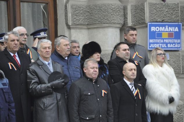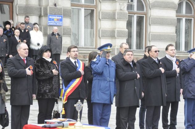 Pe un ger patrunzator, autoritatile locale, reprezentantii formatiunilor politice, candidati la alegerile parlamentare, comandantii unitatilor militare, veterani, membri ai ONG-urilor si simpli bacauani au depus coroane si jerbe de flori. Manifestarea s-a tinut sub semnul tricolorului, prezent in coroane, in insigne, in flori, in fulare sau cocarde.