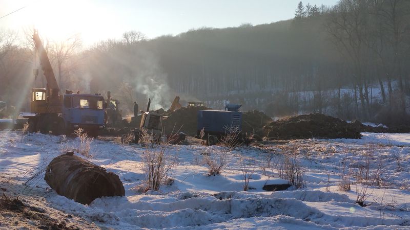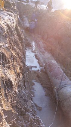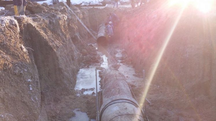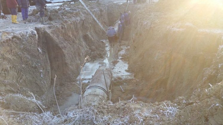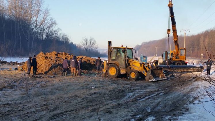 Pe șantierul de la Valea Budului se muncește intens pentru remedierea avariei care a lăsat Bacăul fără apă.