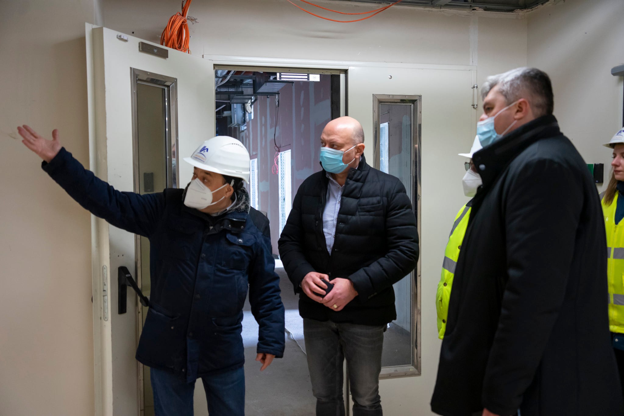 Președintele Consiliului Județean Bacău, Valentin Ivancea, împreună cu Adrian Popa- managerul SJU Bacău, Lucian Bogdanel- prefectul județului, dirigintele de șantier și antreprenorul general, au participat astăzi la o ședință de lucru și la o verificare a stadiului lucrărilor derulate în cadrul contractului încheiat pentru amenajarea subsolului și parterului clădirii „Spital Municipal”.
