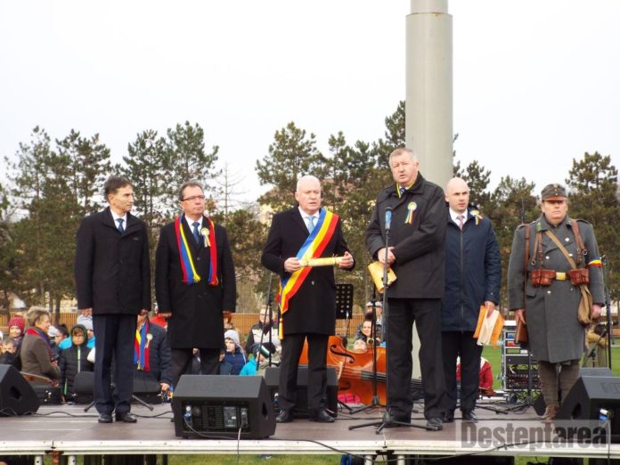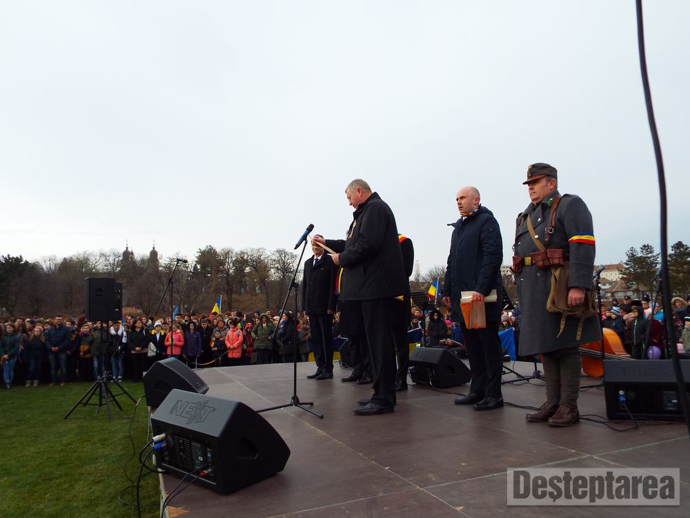 Pe scena de pe Câmpia Libertății au urcat oficialii din județul Bacău și din județul Alba, dar și un soldat îmbrăcat în uniforma militară din Primul Război Mondial. Atunci au fost transmise mesajele oficialităților din cele două județe și a fost evocat evenimentul de acum o sută de ani de pe Câmpie.