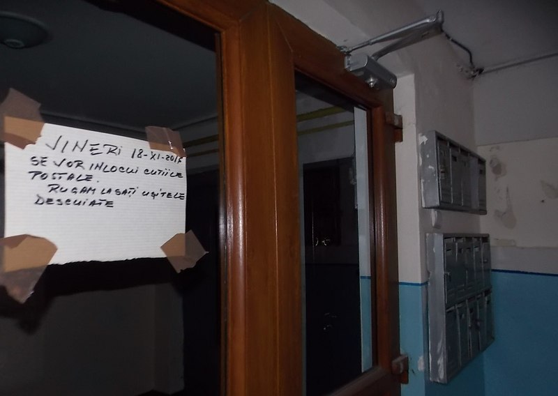La intrarea in blocul nr. 8/A de pe strada Cornisa Bistritei te intâmpina un anunt scris cu litere de-o schioapa. Proprietarii sunt invitati sa-si lase descuiate pentru o zi cutiile postale, acestea urmând sa fie inlocuite.