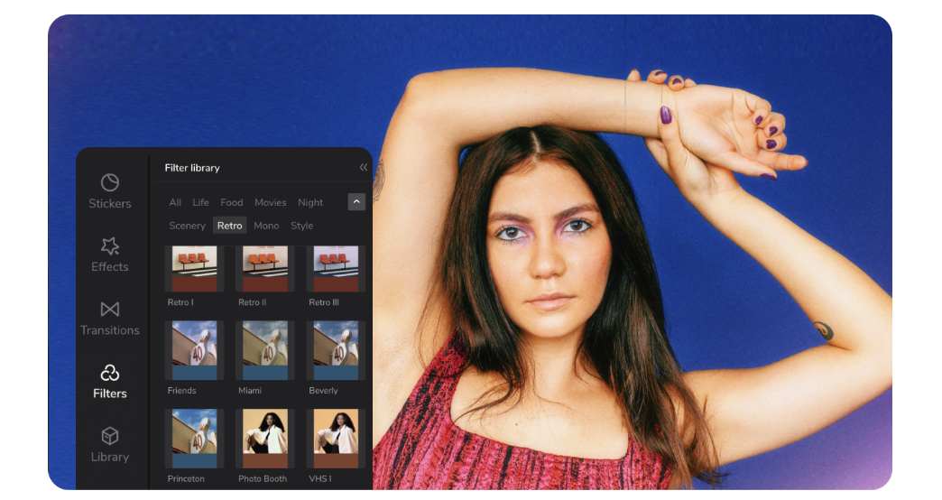 CapCut oferă o gamă de filtre preinstalate pentru a oferi videoclipului dvs. un aspect vintage. Atingeți fila „Filtre” și explorați diferitele opțiuni disponibile. Alegeți un filtru vintage care se potrivește cel mai bine stării de spirit pe care doriți să o creați și aplicați-l videoclipului dvs.