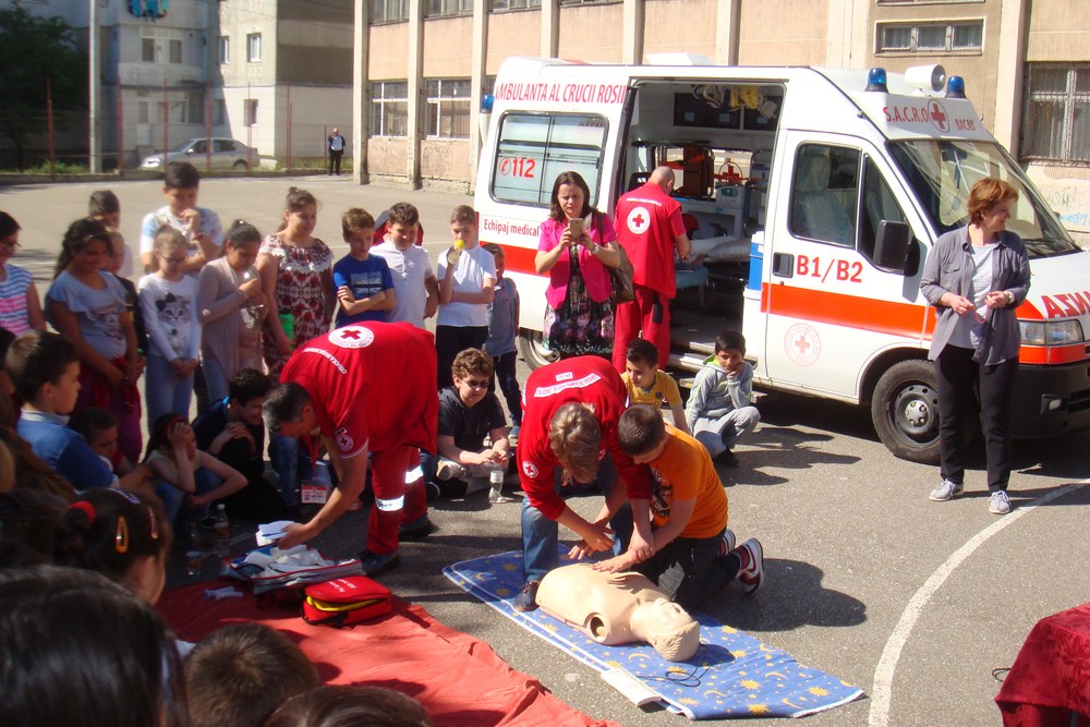 Cu sprijinul invitaţilor: o ambulanță și echipaj de la Crucea Roşie Bacău, asistent medical Cadar Mihaela din şcoală şi două asistente medicale din rândul părinţilor Daniela Burac și Daniela Tătaru, angajate a Spitalului Judeţean de Urgenţă Bacău, au fost făcute demonstaţii de acordare a primului ajutor în diverse situaţii ivite în timpul programului şcolar sau în afara lui.
