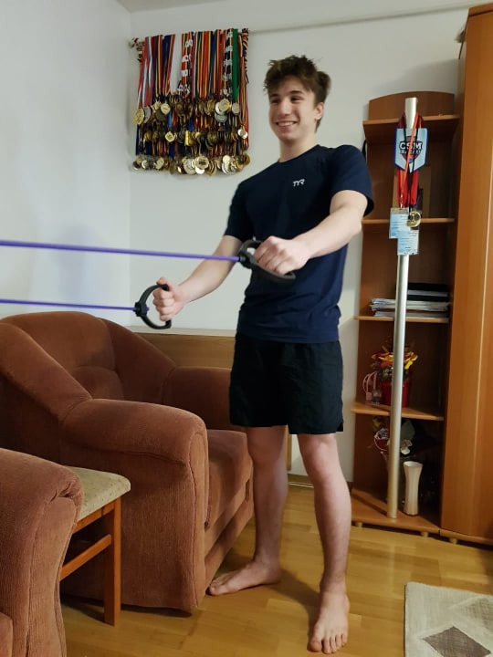 „În ciuda faptului că nu putem înlocui antrenamentele din sala de dans sau de la sala de forță, trebuie să rămânem în formă și să profităm de timpul pe care îl avem pentru a ne antrena individual. Percep această perioadă ca un „plus” pentru activitatea mea de dansator și sportiv, întrucât reușesc zilnic să lucrez fizic mai mult decât îmi permitea timpul în mod obișnuit. Pe lângă antrenamentele pe care le facem online cu antrenorii noștri (două pe zi), caut pe internet diferite exerciții ce se pot lucra de acasă. Mi-aș fi dorit cu siguranță acum să fiu în sala de dans sau la vreo competiție, dar în curând vom depăși aceste momente dificile.” Cristiana Chiper, sportivă la CS Adamas Bacău.