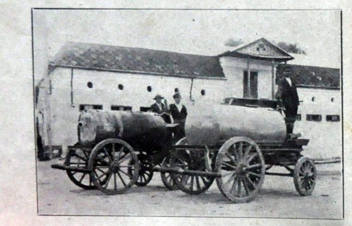 Pe la 1867, primarului de-atunci îi veni în minte un alt mijloc de stropire a străzilor: două poloboace mari, încăpătoare de vreo 60 vedre de apă fiecare erau puse în două căruţe şi trase de doi cai de la pojărnicie. Poloboacele aveau la fundul de jos un fel de furtun de pânză vârât înăuntru şi la capătul furtunului o tinichea mare cu borticele multe, în forma stropitoarei. Capătul furtunului unde era stropitoarea era legat cu o frânghiuţă care se purta de un om al primăriei în dreapta şi în stânga. Caii mergeau, se dădea drumul apei şi omul vântura furtunul udând până unde putea azvârli, şi nu azvârlea apa departe, cea mai multă cădea pe iţarii şi opincile lui; astfel că bietul om când se ducea acasă trebuia să se usuce multă vreme; iar când se necăjea sau se sfădea cu cineva îl blestema să ajungă bălălău la primărie.