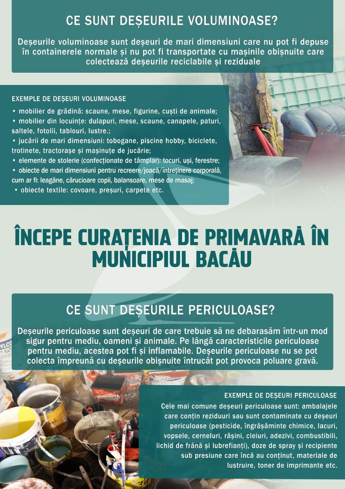 Prin această campanie, autoritățile încurajează locuitorii Bacăului să contribuie la un oraș mai curat și mai sigur, oferindu-le ocazia de a scăpa de obiectele mari sau toxice într-un mod ecologic și organizat.