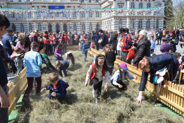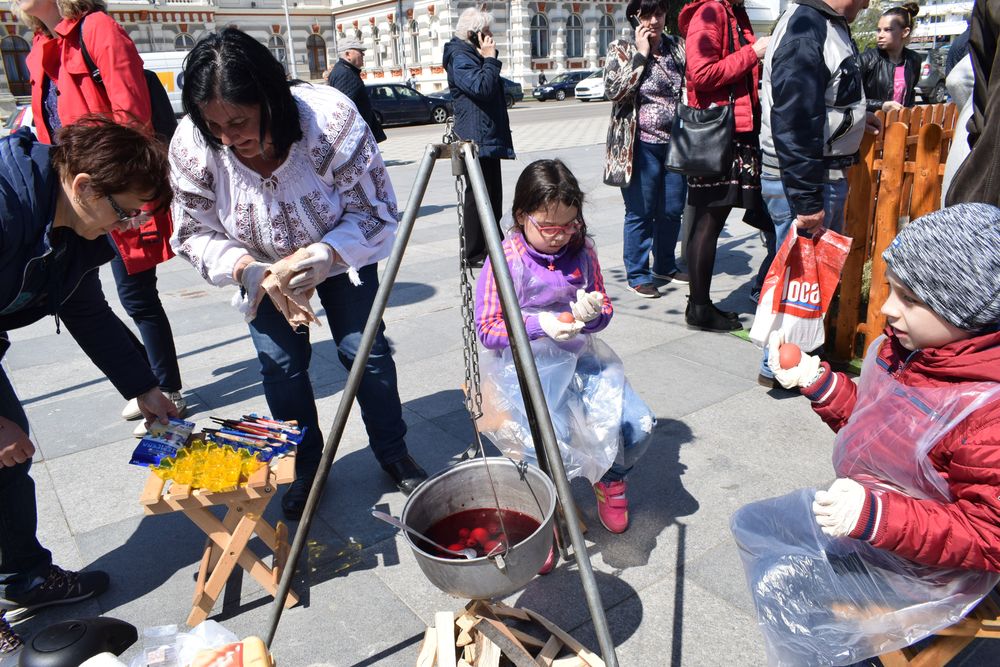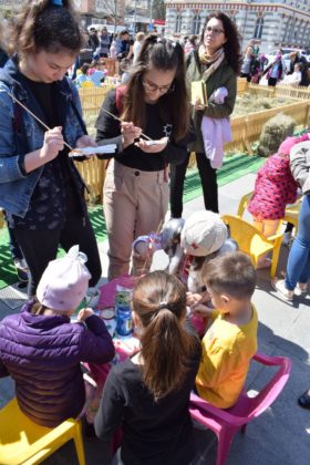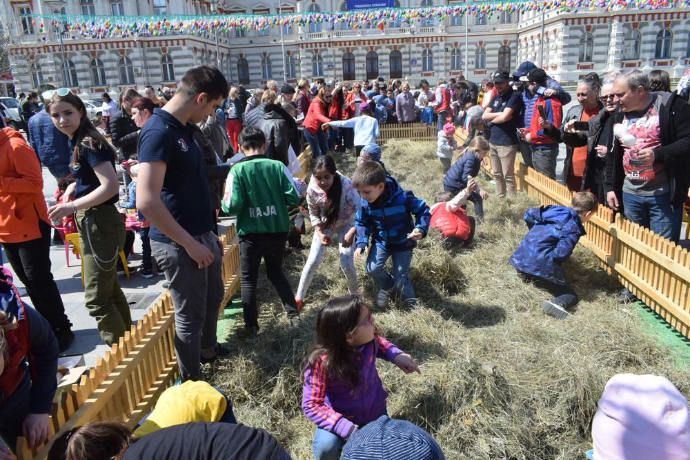 Copiii nu doar au admirat iepurașii, puișoii și jucăriile din lemn, ci au participat la „vânătoarea de ouă” organizată într-o „poiană” sau la atelierul de pictură, amenajat alături. Greu de plecat de aici! Bucuria puștilor, sărbătoarea culorilor de pe tarabe și strălucirea soarelui, care nu a fost zgârcit marți, au făcut, împreună, ca ziua să fie minunată și pentru părinți.