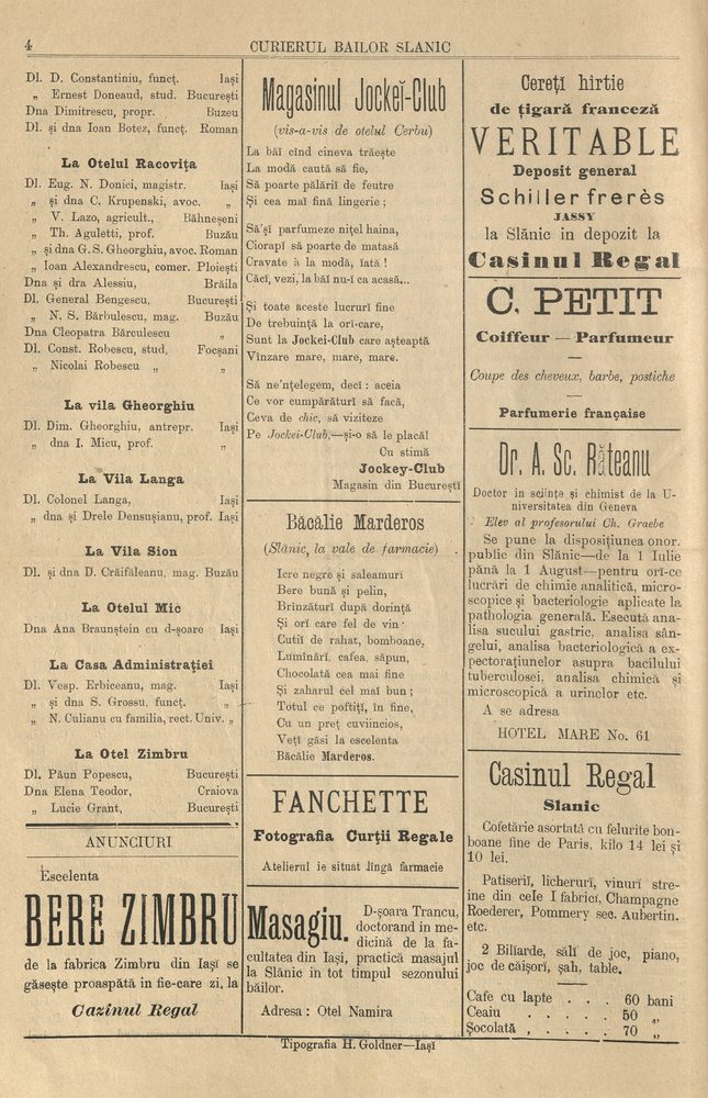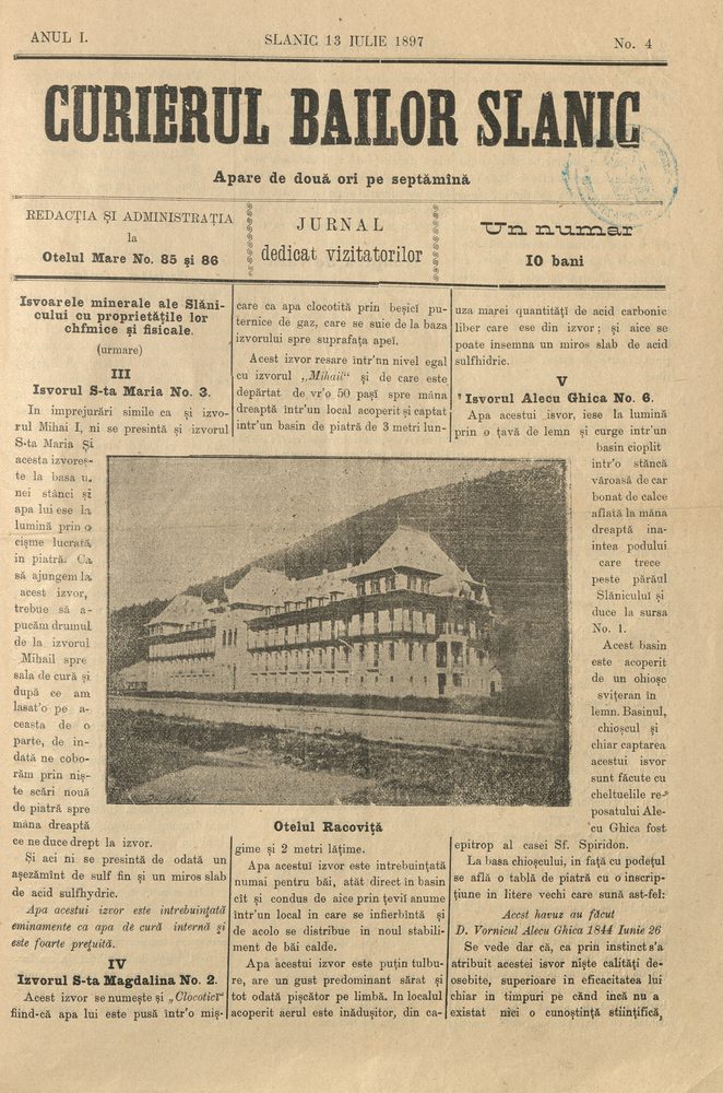 Continuăm serialul dedicat ziarului ,,Curierul Băilor Slănic” (din colecția Bibliotecii Centrale Universitare ,,Mihai Eminescu” din Iași – BCU), prima publicație care a apărut într-o stațiune din România, în fapt, un jurnal istoric al stațiunii Slănic-Moldova, prezentat online în premieră, care acoperă o perioadă istorică mai puțin cunoscută publicului larg.