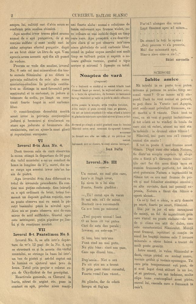 Astăzi vom parcurge paginile ziarului ,,Curierul Băilor Slănic”, numărul 4, din 13 iulie 1897, care continuă descrierea izvoarelor minerale din stațiune.