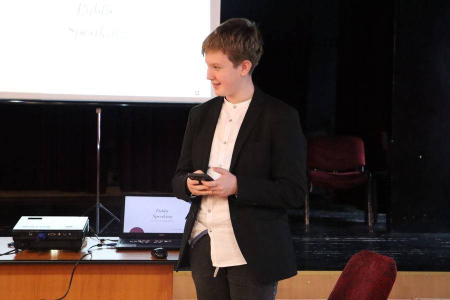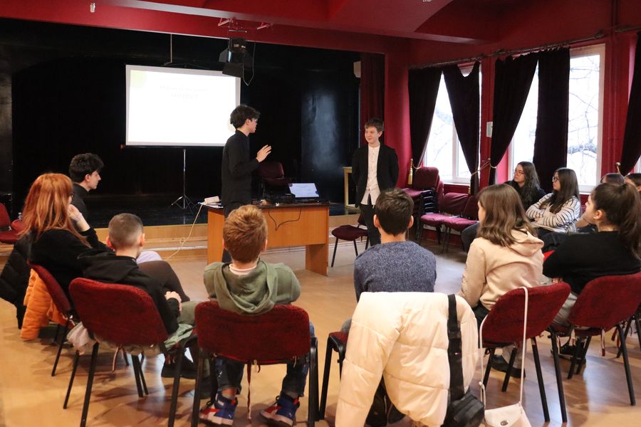 De această dată, host a fost Tudor Mihail Pascu (clasa a VII-a), ce a adus în fața elevilor de la cercul de Public Speaking & Jurnalism pe un tânăr talentat: Mihnea Ciprian Sofian, elev în clasa a XI-a, ce este Secretar General BacăuMUN și are deja experiență în dezbateri și voluntariat, despre care a vorbit participanților la eveniment.