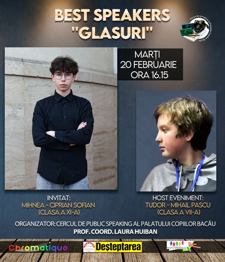 Când a fost ultima oară când ai făcut ceva ieșit din rutina proprie? Ce ai făcut astăzi diferit? Ei bine, ultima oară, pentru mine, a fost pe 20 februarie. Am asistat la evenimentul ”GLASURI”, o întâlnire din seria ”Best Speakers”, organizată de cercul de Public Speaking & Jurnalism de la Palatul Copiilor Bacău.