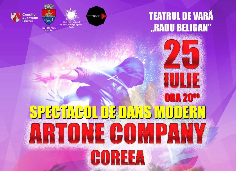 Aflată într-un turneu în România, formaţia de dans modern Artone Company, una dintre cele mai valoroase colective de acest gen din Coreea, va susţine astăzi, de la ora 20.00, la Teatrul de Vară „Radu Beligan”, un spectacol extraordinar.