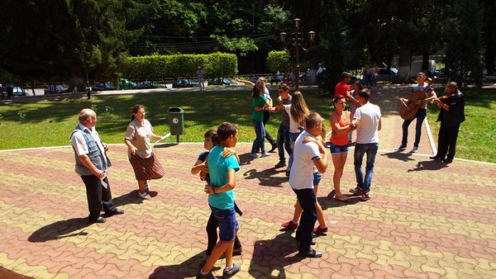 Trecator ca oricare turist prin statiunea Slanic Moldova acum in miez de vara, am dat, in preajma chioscului din parc, peste un grup de tineri dansatori dintr-un sat de munte bacauan, Tarhausi. Sase perechi care, acompaniate de o vioara si de o gorduna faceau deliciul trecatorilor cu iscusitele lor piruiete, dar si cu strigaturile specifice dansurilor populare din zona Ghimesului.